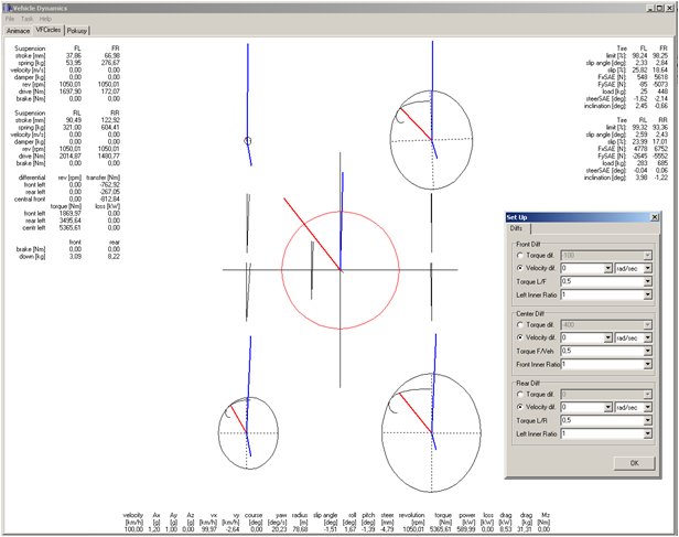 Výpočet ustálených stavů (např. jízda po kruhové dráze konstantní rychlostí) a kvaziustálených stavů (jízda po kruhové dráze včetně akcelerace nebo brzdění).